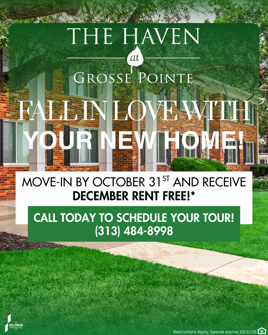 The Haven at Grosse Pointe offers the perfect blend of comfort and convenience in the heart of Harper Woods, Michigan. Our community is nestled within the Grosse Pointe and Harper Woods school districts, providing an ideal balance of peace and accessibility. Just minutes from your doorstep, Downtown Grosse Pointe invites you to explore a vibrant mix of local restaurants, shopping, a charming farmers market, live events, and much more.